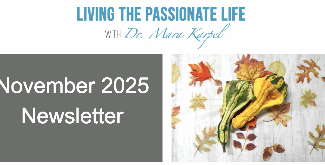 November 2025 Newsletter! Living the Passionate Life with Dr. Mara Karpel by Dr. Mara Karpel | Nov 26, 2025 | Dr. Karpel's Blog, Internet Radio Shows, Publications, Radio Shows | 0 comments The NOVEMBER 2025 Newsletter is here! Read it now right HERE! NOVEMBER 2025 NEWSLETTER!! LIVING THE PASSIONATE LIFE WITH DR. MARA KARPEL Submit a Comment Cancel replyYour email address will not be published. Required fields are marked *Comment * Name * Email * Δ