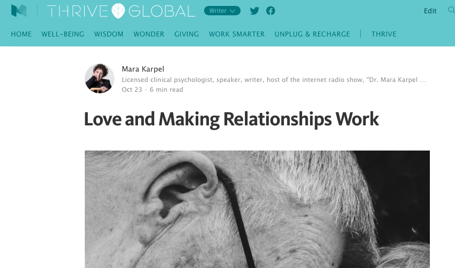 Check out Dr. Mara’s blog, Love and Making Relationships Work, in Thrive Global.